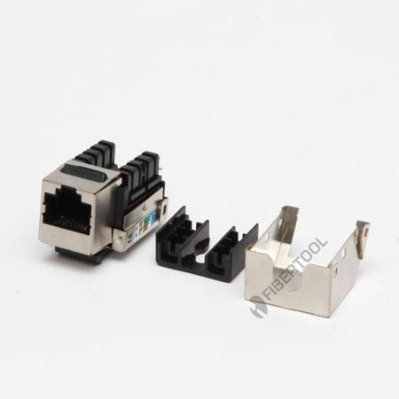 Корпус изготовлен из пластика ABS UL94V-0. Контакт: PC UL94V-0, 0,45 мм диаметр, из фосфор-бронзы с 50u" золотым напылением. Цветовая раскладка проводников в соответствии с T568B и T568A. Для заделки могут использоваться два типа инструментов: тип 110 и тип Krone.