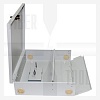 По конструкции и материалу оптический кросс КРН-48 аналогичен КРН-32. Отличает модель увеличенные габаритные размеры для размещения 48 коммутационных соединений и откидывающаяся боковая планка распределительного отсека для удобства обслуживания патч-кордов. Монтажный отсек КРН-48 адаптирован под установку 4-х сплайс-кассет с крышкой. Для установки проходных розеток типов FC type D, SC, ST, LC-duplex, MT-RJ можно использовать 6-ть съемных адаптерных панелей. На боковой поверхности кросса есть перфорированные отверстия, предназначенные для установки стяжек и организации кабеля.