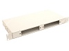 В зависимости от установленных адаптерных панелей может меняться как емкость, так и тип устанавливаемых оптических розеток. Максимальная емкость кросса – 32 портов типа SC, FC, ST либо LC DX. Корпус стоечного кросса изготовлен из стали и покрыт порошковой краской. Кросс адаптирован под кассету СКУ-1 с возможностью установки до трех кассет с крышкой. Задняя панель кросса имеет классический вид и способствует удобному и надежному креплению кабеля при введении его в кросс.