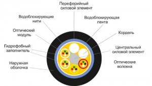 Кабель, шнур оптический для внутренней прокладки ОККТМ-10-01-0,22-8-(1.5) включает в себя центральный силовой элемент из диэлектрика или стального троса, изолированного полиэтиленом. Вокруг центрального элемента скручены кордели и оптические модули с волокнами. В качестве заполнителя межмодульного пространства линий используется гидрофобный материал, периферийный силовой элемент – фольга из алюмополиэтилена. Возможно изготовление кабеля ОККТМ-10-01-0,22-8-(1.5)...