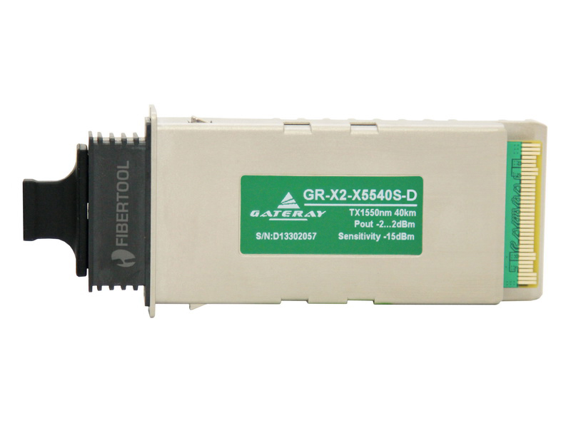 GR-X2-X3120S-D - двухволоконный оптический модуль с форм-фактором X2, скорость передачи данных до 10 Гбит/с на расстояние до 20 километров по двум одномодовым оптическим волокнам (Single mode fiber), рабочая длина волны Tx 1310 нм, два разъема SC, поддержка функции Digital Diagnostics Monitoring (DDM).