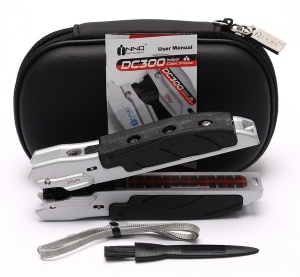 Стриппер DC-300A/B разработан как универсальный инструмент с тремя ножами для зачистки плоского кабеля (DC300A/3x2 мм и DC300B/2x1.6мм) и волокна в буфере 250 и 900 мкм.